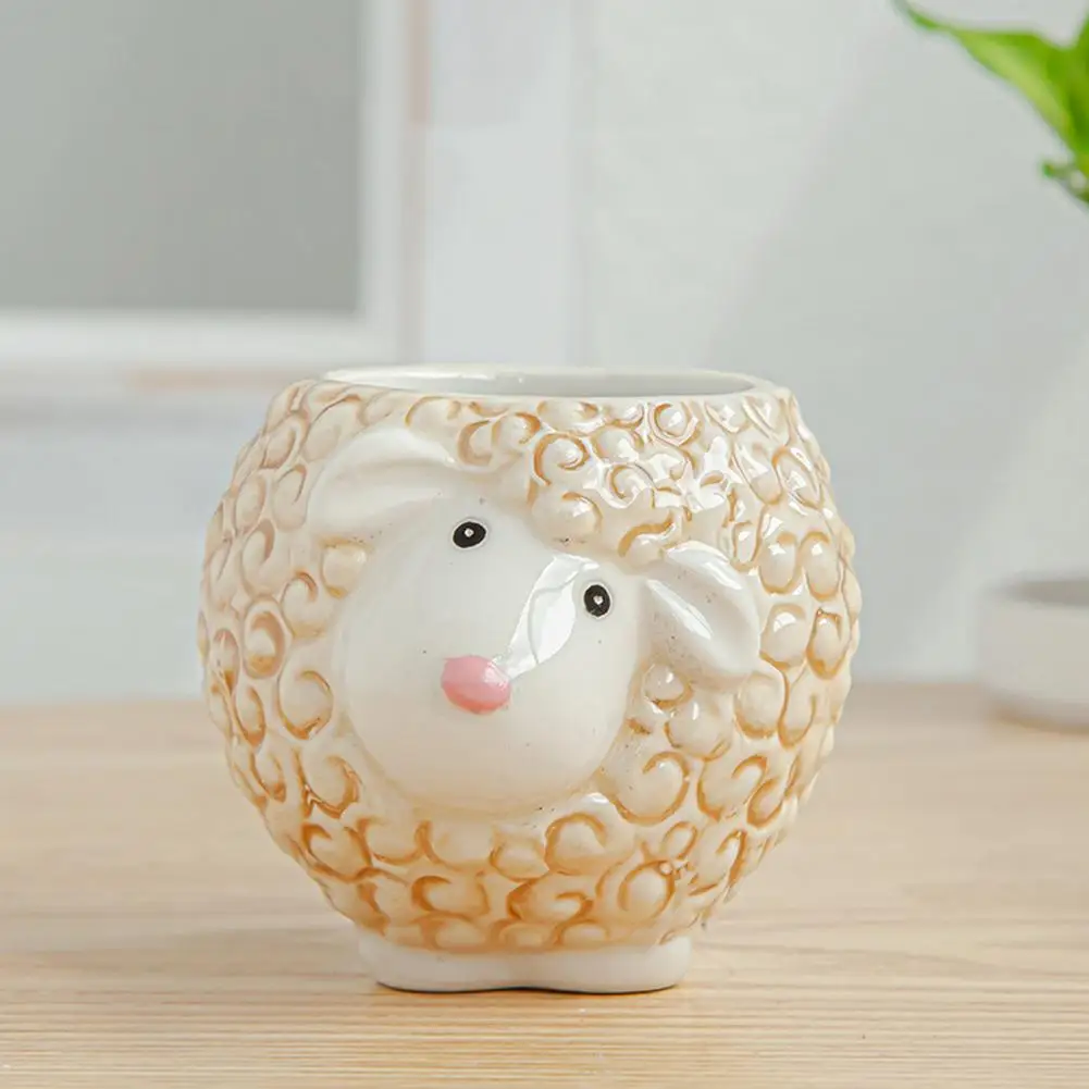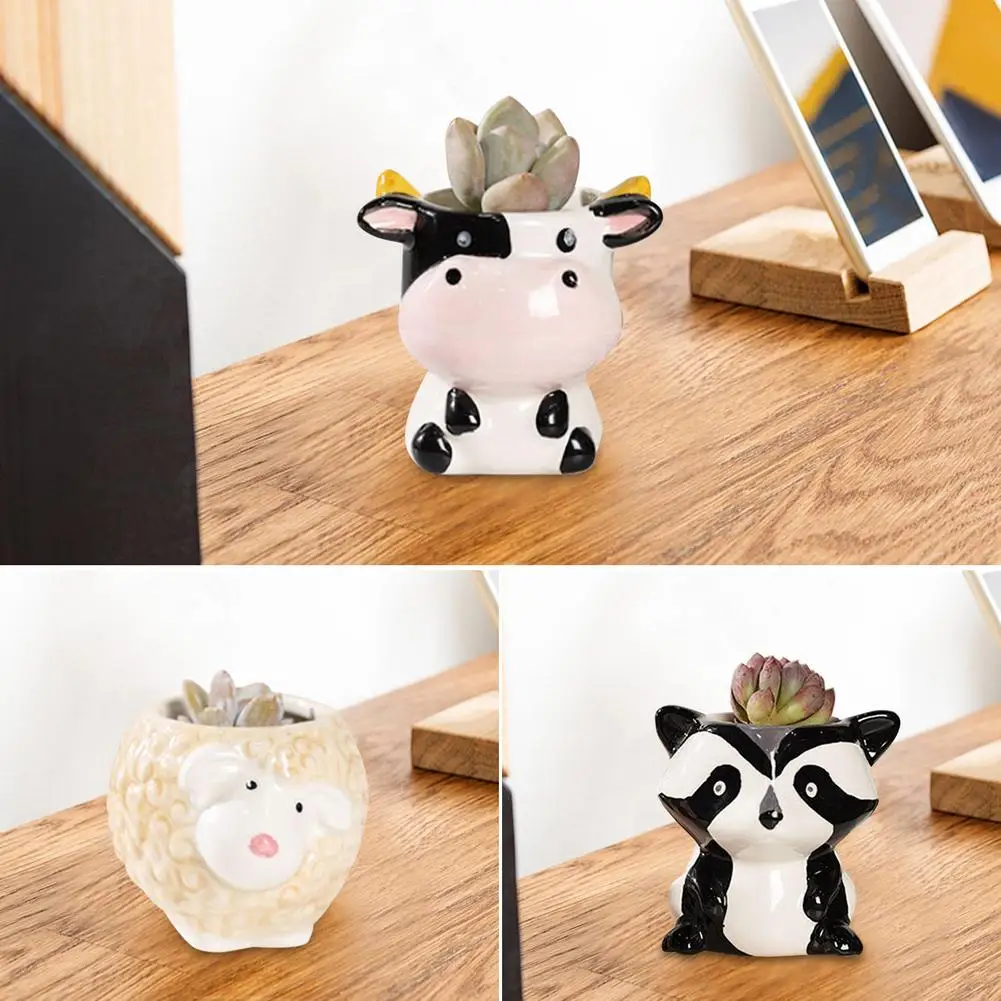 Kawaii – Mini Pot de fleurs en céramique, plantes succulentes, dessin animé raton laveur mouton vache, bonsaï